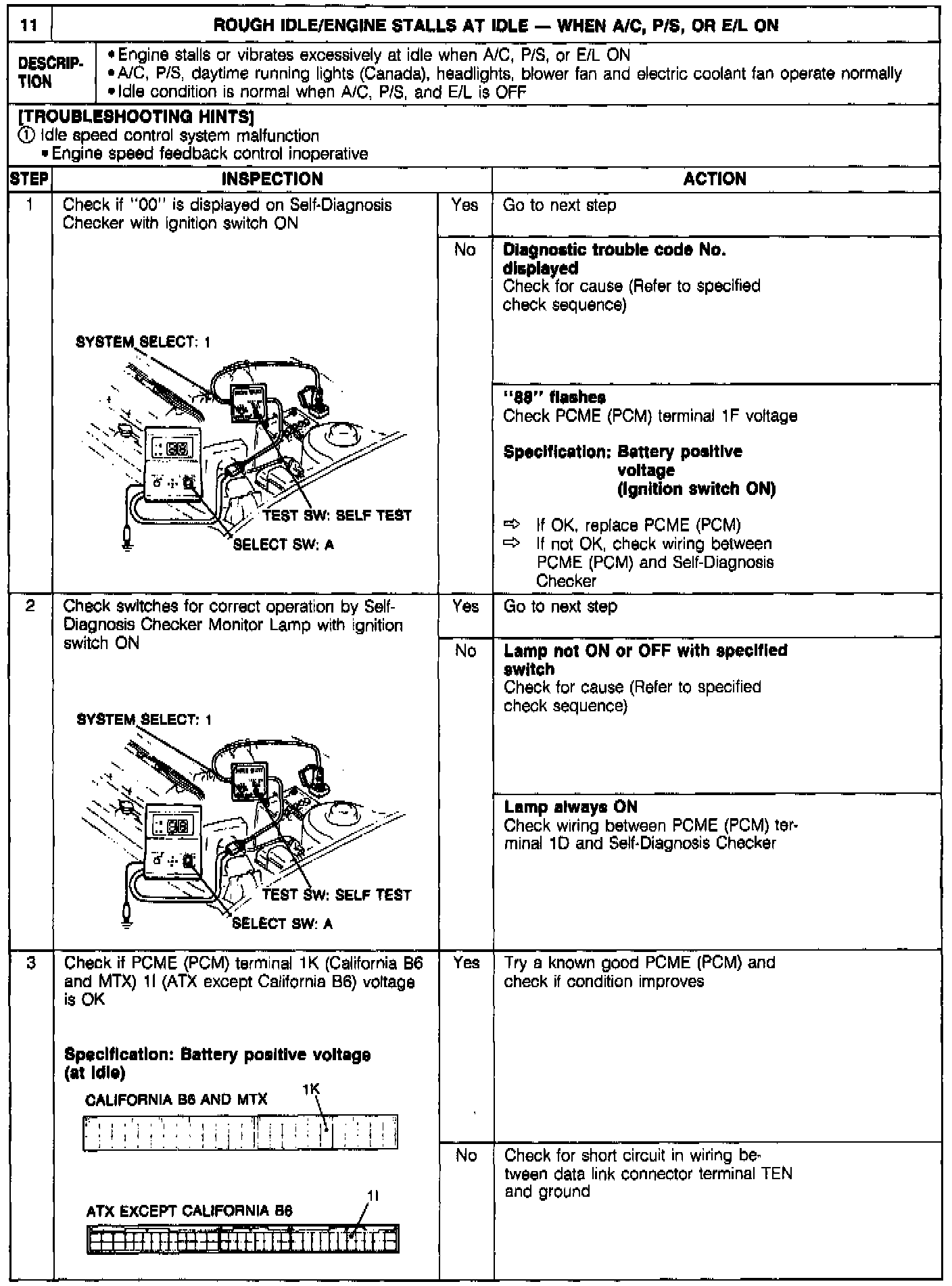 Rough Idle / Engine Stalls At Idle - A/C, P/S, Or E/L ON: