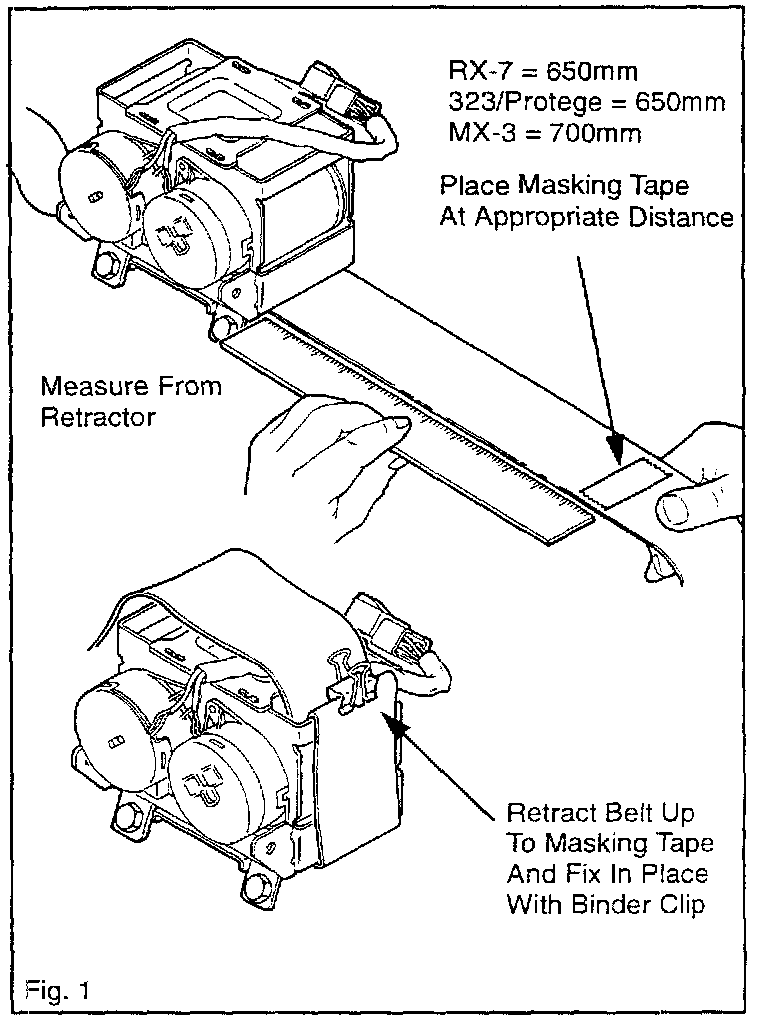 6. Measure from the retractor and place a piece of masking tape at the appropriate distance. Refer to Fig. 1.