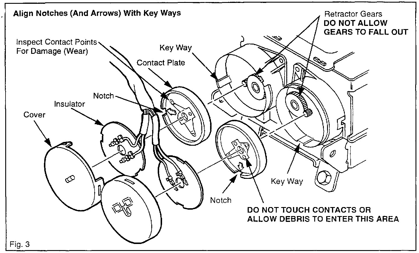 ^ If contacts are badly worn or damage is present, replace the retractor assembly.