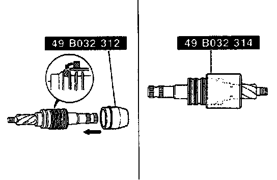 Caution: When pressing in, do not apply a load pressure of more than 29,430 kPa (300 kg/cm2, 4,266 psi), because to do so will damage the oil seal and inner guide.