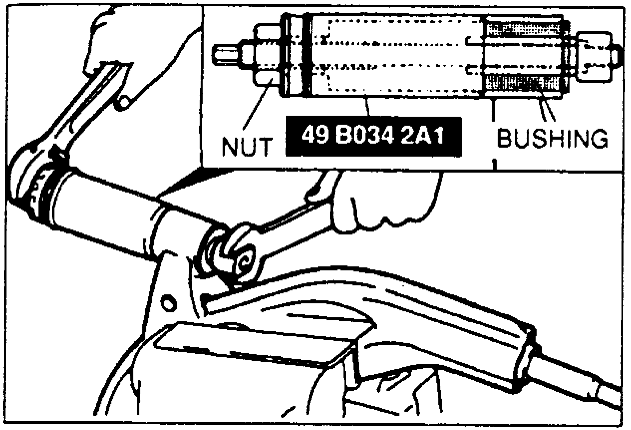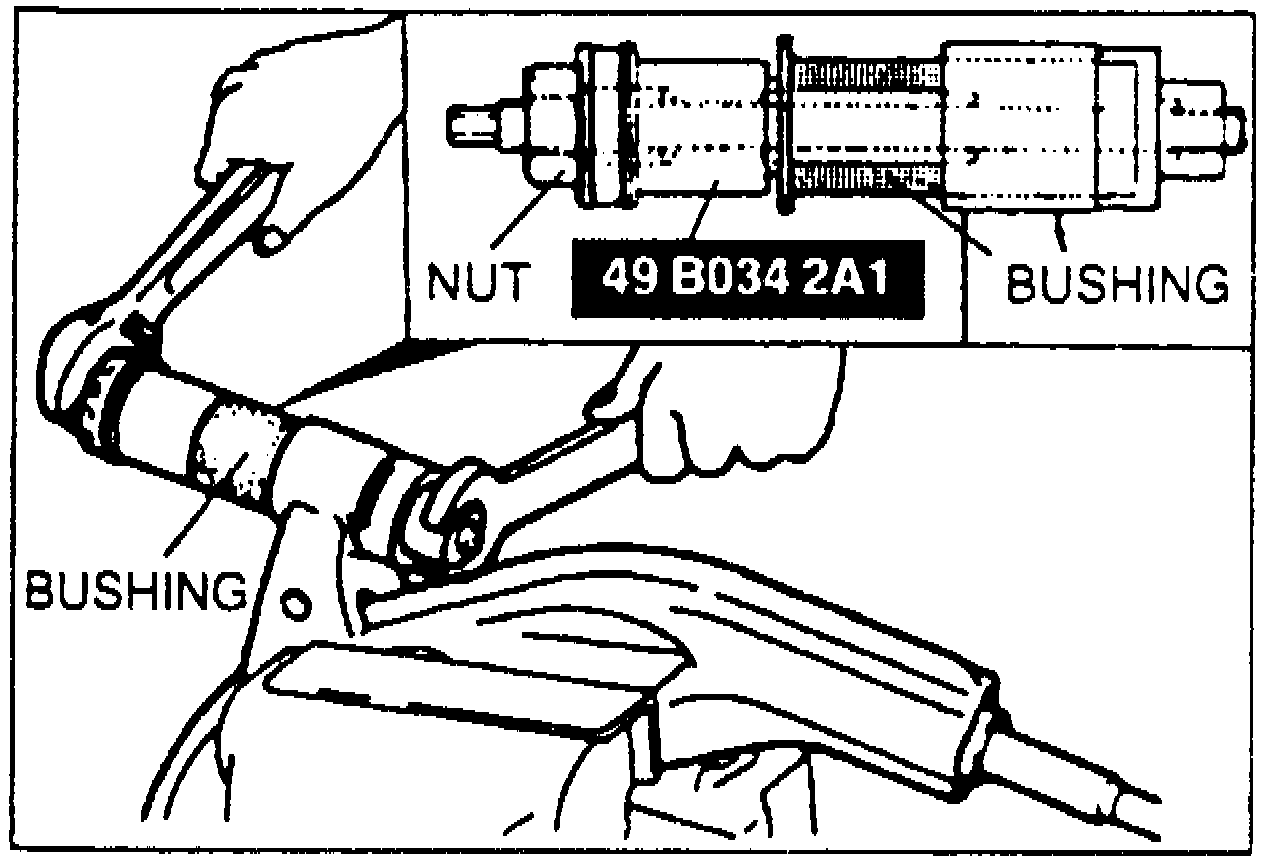 3. Using tools shown in Figs. 14 and 15, remove lower arm front bushing.