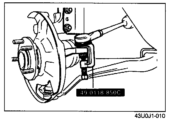 3. Disconnect the tie-rod end from the knuckle by using the SST.