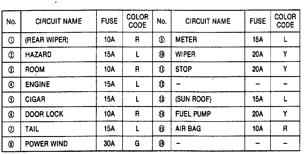 Fuse Location/Application Chart