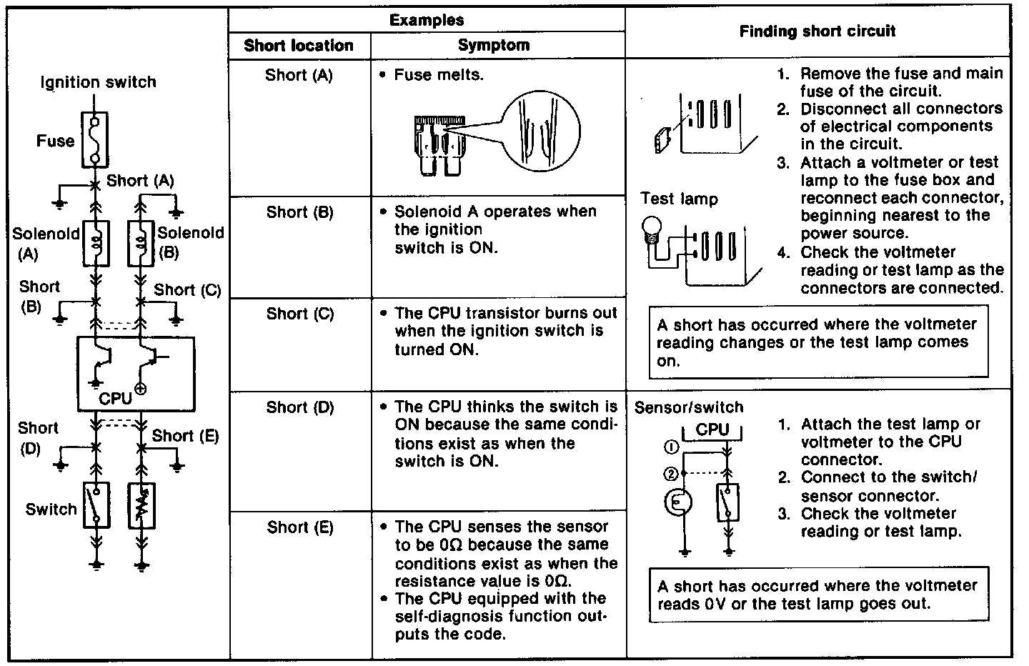 Finding Short Circuits-Circuits Connected To Control Unit: