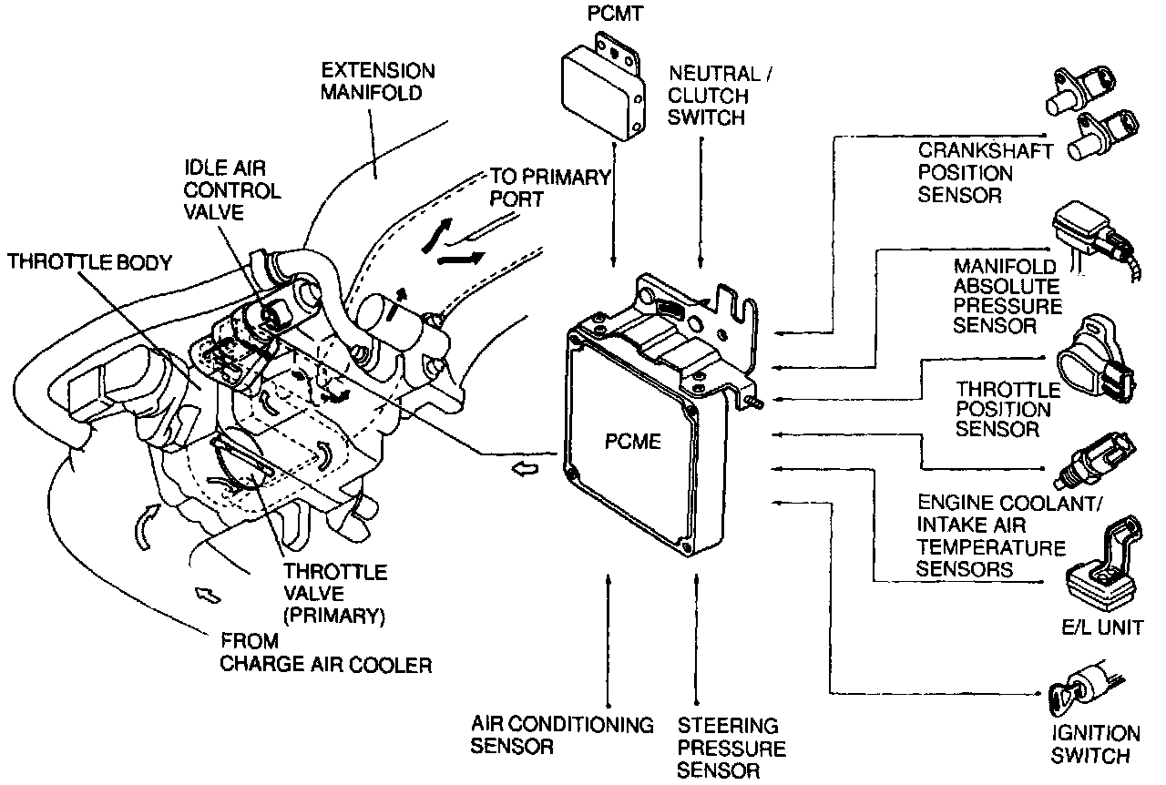 The idle-speed control system performs closed loop control so that the engine idles smoothly and at the target speed. The system also performs the function of the anti-afterburn valve (AAV), thereby eliminating the AAV and simplifying the deceleration control system.