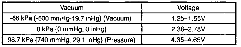 3. Connect a voltmeter between the manifold absolute pressure sensor terminal A and B and verify that the voltage is within specification.
