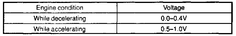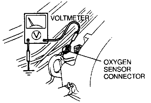 3. Connect a high internal resistance voltmeter (more than 40 k ohms) between the oxygen sensor terminal and ground.