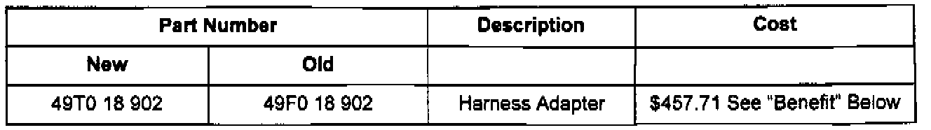 2) your old harness adapter is non-serviceable, a new harness adapter will be shipped to you. Your dealer's parts account will then be debited for $457.71.