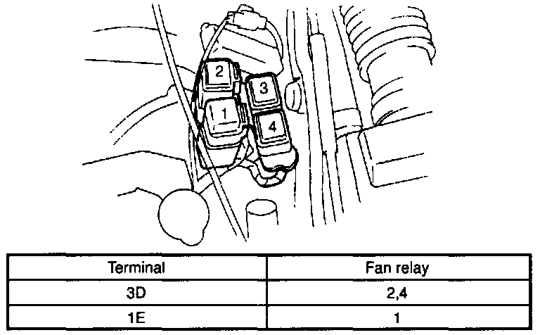 3. Short the PCME terminals and verify that the coolant fan relays operate as described below.