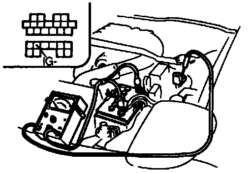 4. Connect a tachometer to the data link connector terminal IG-.