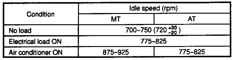 Idle speed (Neutral or P range): 700-750 rpm
