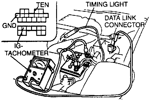 4. Connect a tachometer to the data link connector IG- terminal as shown.