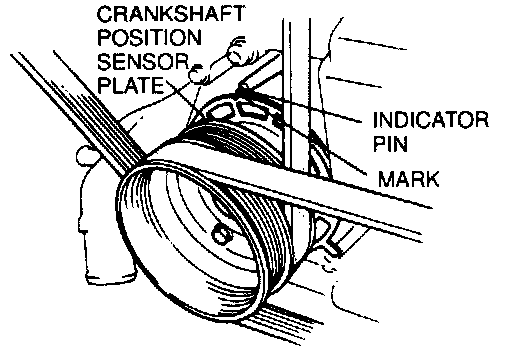 9. Verify that the timing mark (white) on the crankshaft position sensor plate is aligned with the indicator pin.
