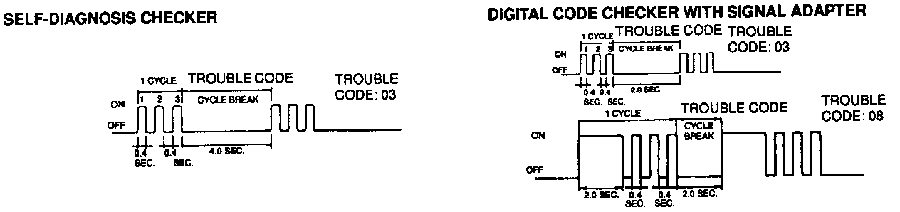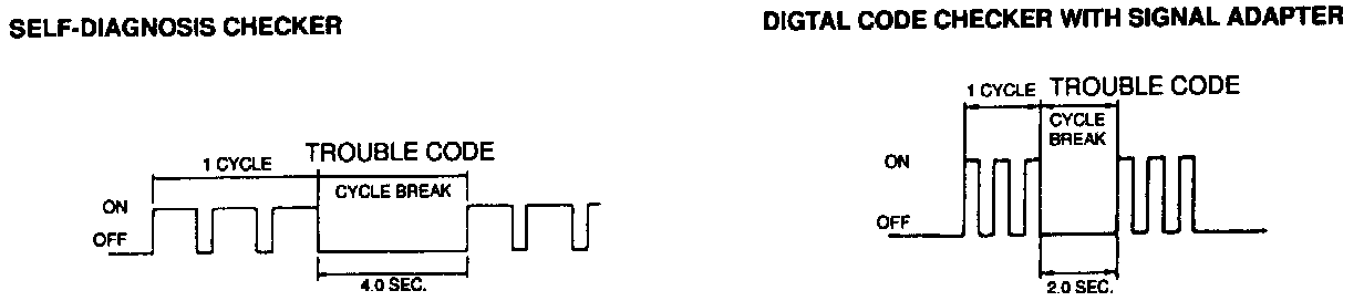 The time between trouble code cycles is 4.0 seconds (the time the buzzer is off).