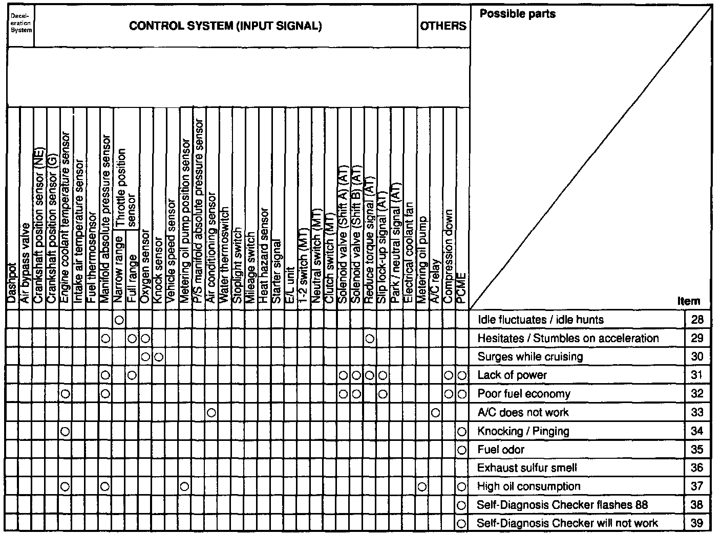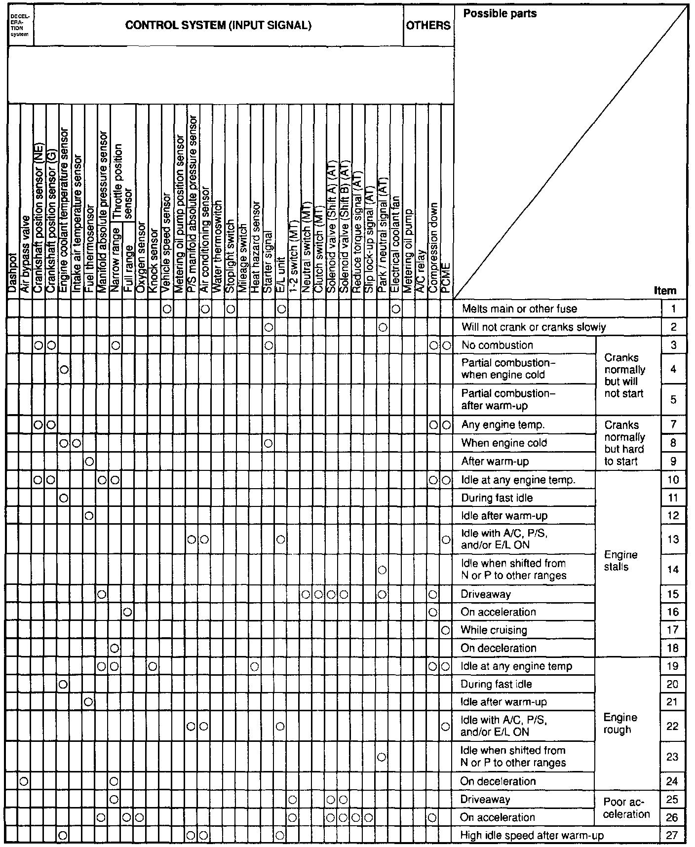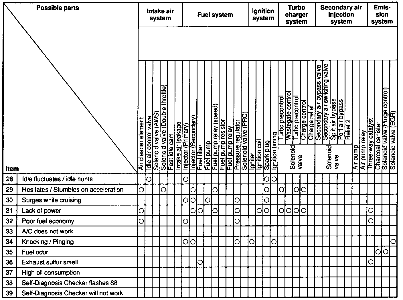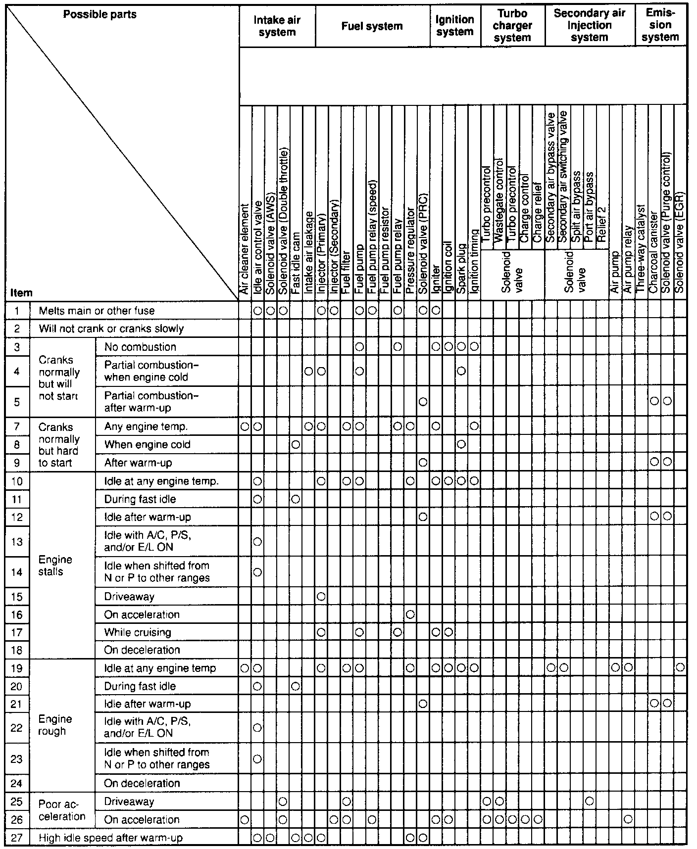 The Quick Diagnosis Charts show the relationship between troubleshooting items and inspection points.