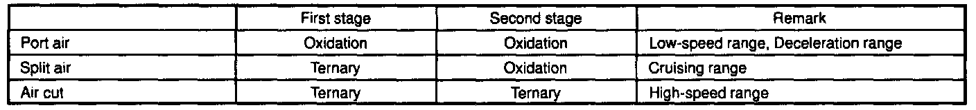1. Before the engine is warmed up, when large amounts of CO and HC are created, the three-way catalyst is supplied port air and uses both the first and second stages as the oxidation catalyst.