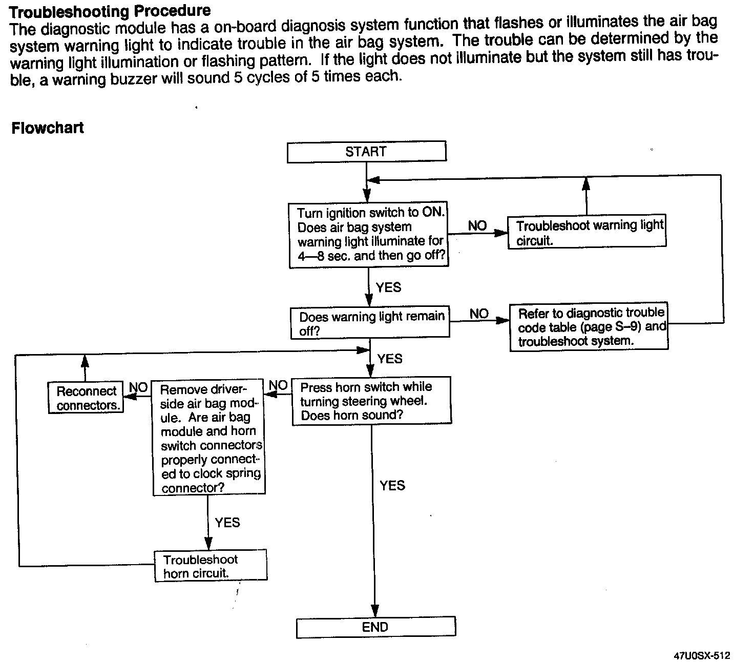 6. Follow the troubleshooting flowchart to verify that the air bag system is operating normally.