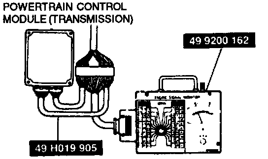 3. Connect the SSTs (Engine Signal Monitor and Adapter Harness) to the powertrain control module (transmission) as shown.