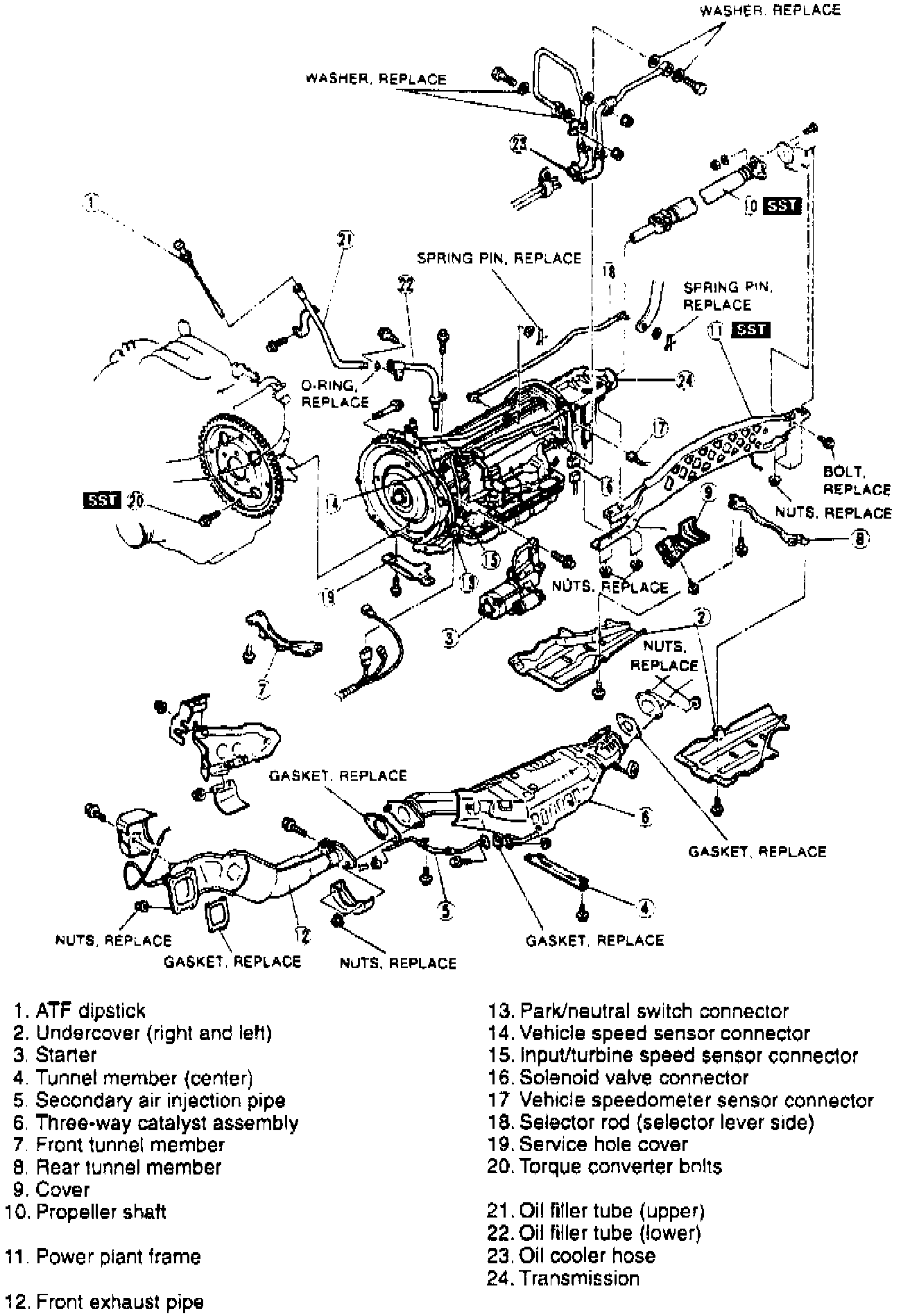5. Remove center tunnel member and secondary air injection pipe.