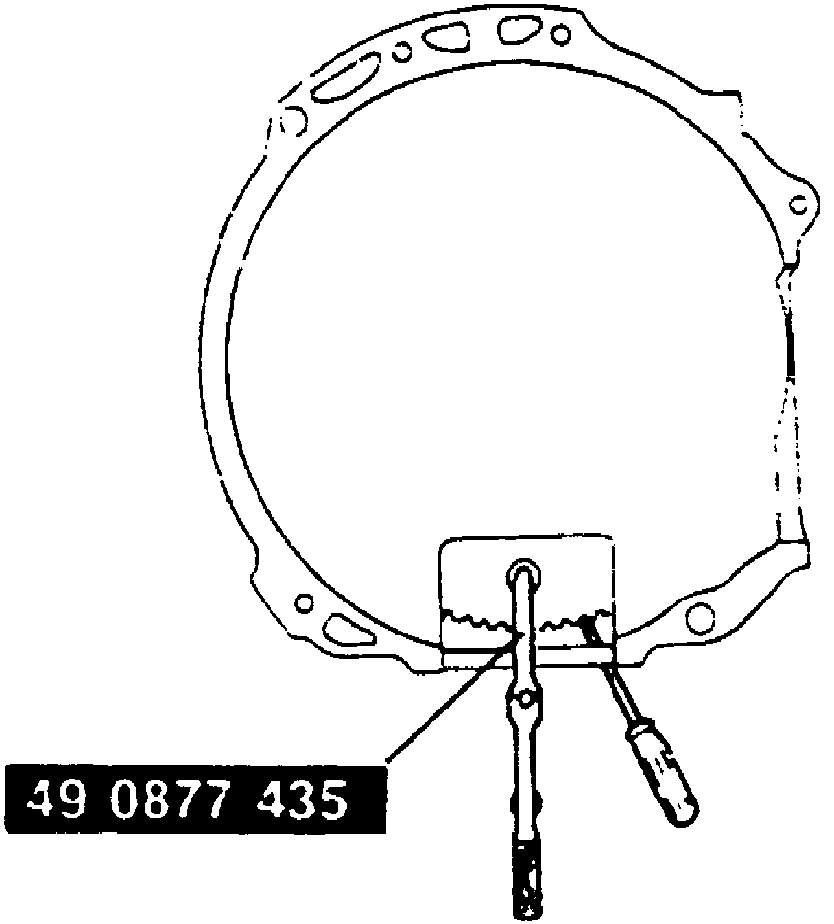 14. Remove service hole cover, place a suitable screwdriver in position to lock driveplate down while removing torque converter bolts using wrench tool No. 49 0877 435, or equivalent, Fig. 21.