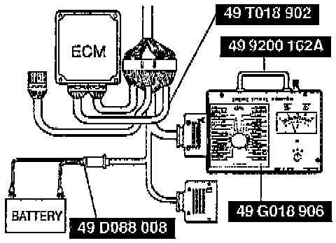 7. Connect the SSTs. Engine Signal Monitor and Adapter to the ECM as shown.