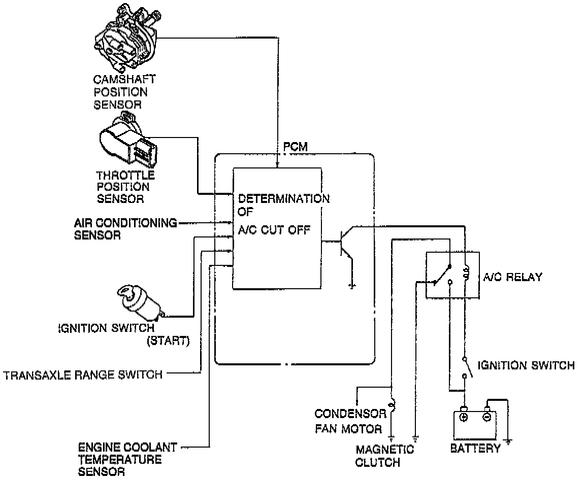with an output signal and is used as circuit cut-off for the compressor magnetic clutch when the