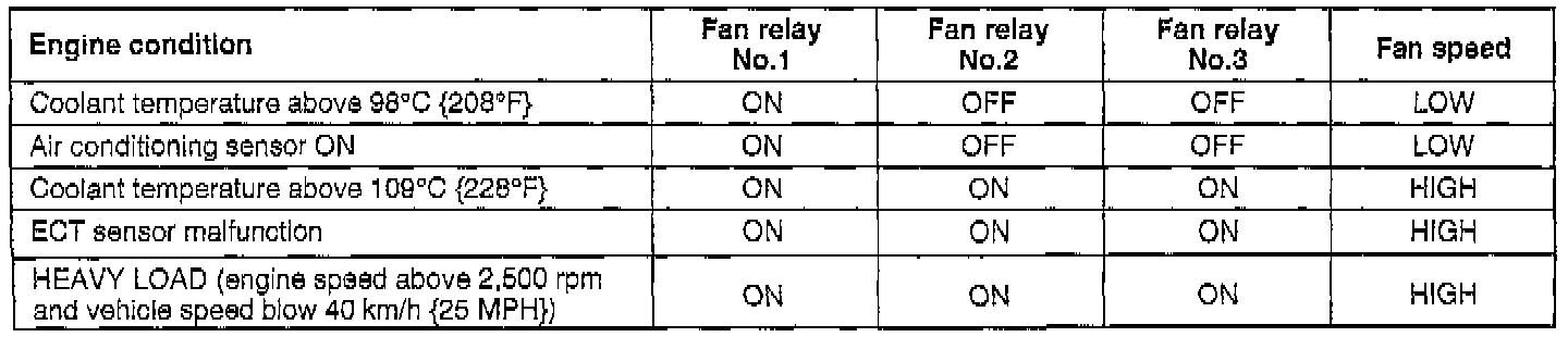 COOLANT FAN OPERATION CHART