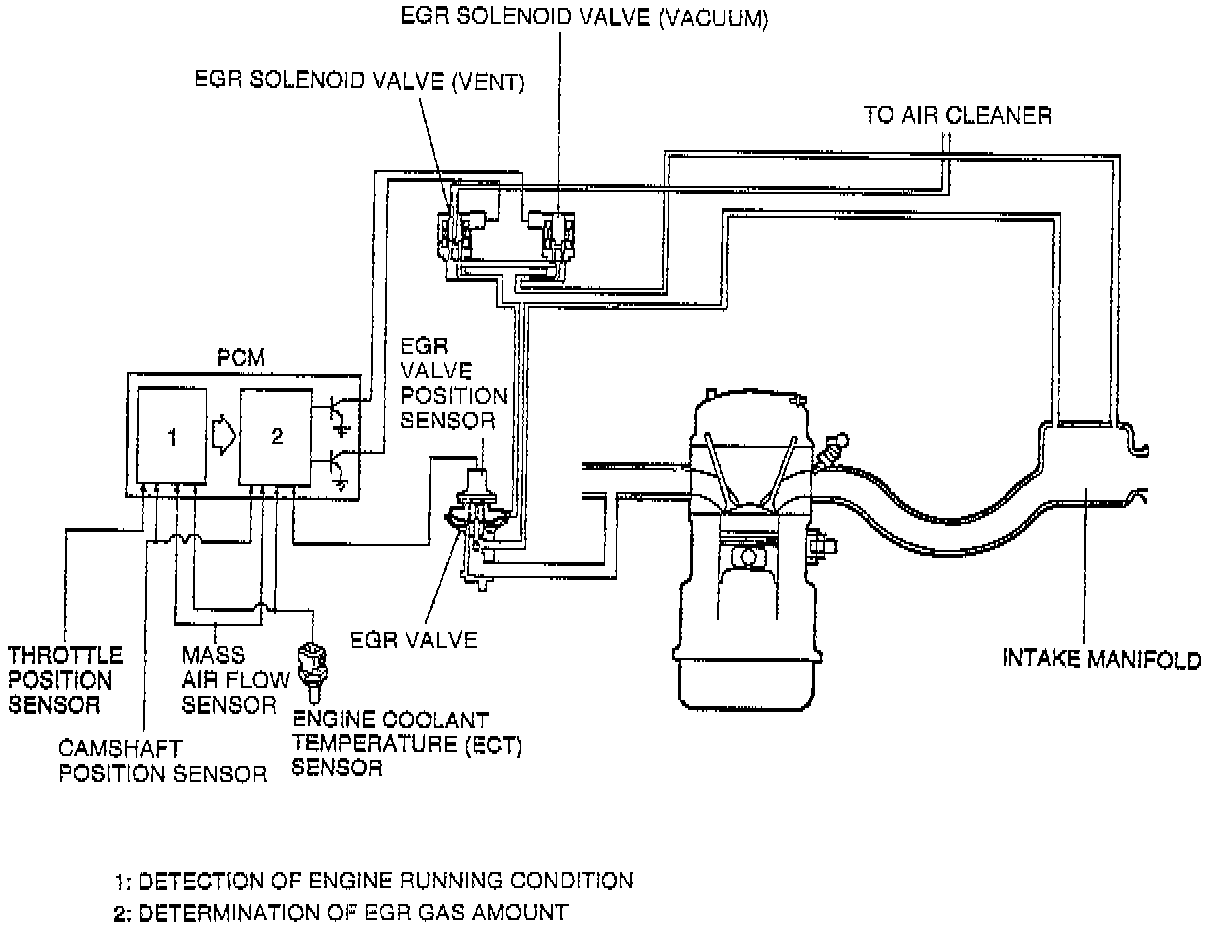 This system consists of the EGR valve, EGR valve position sensor, two duty-solenoid valves, PGM, and input devices.