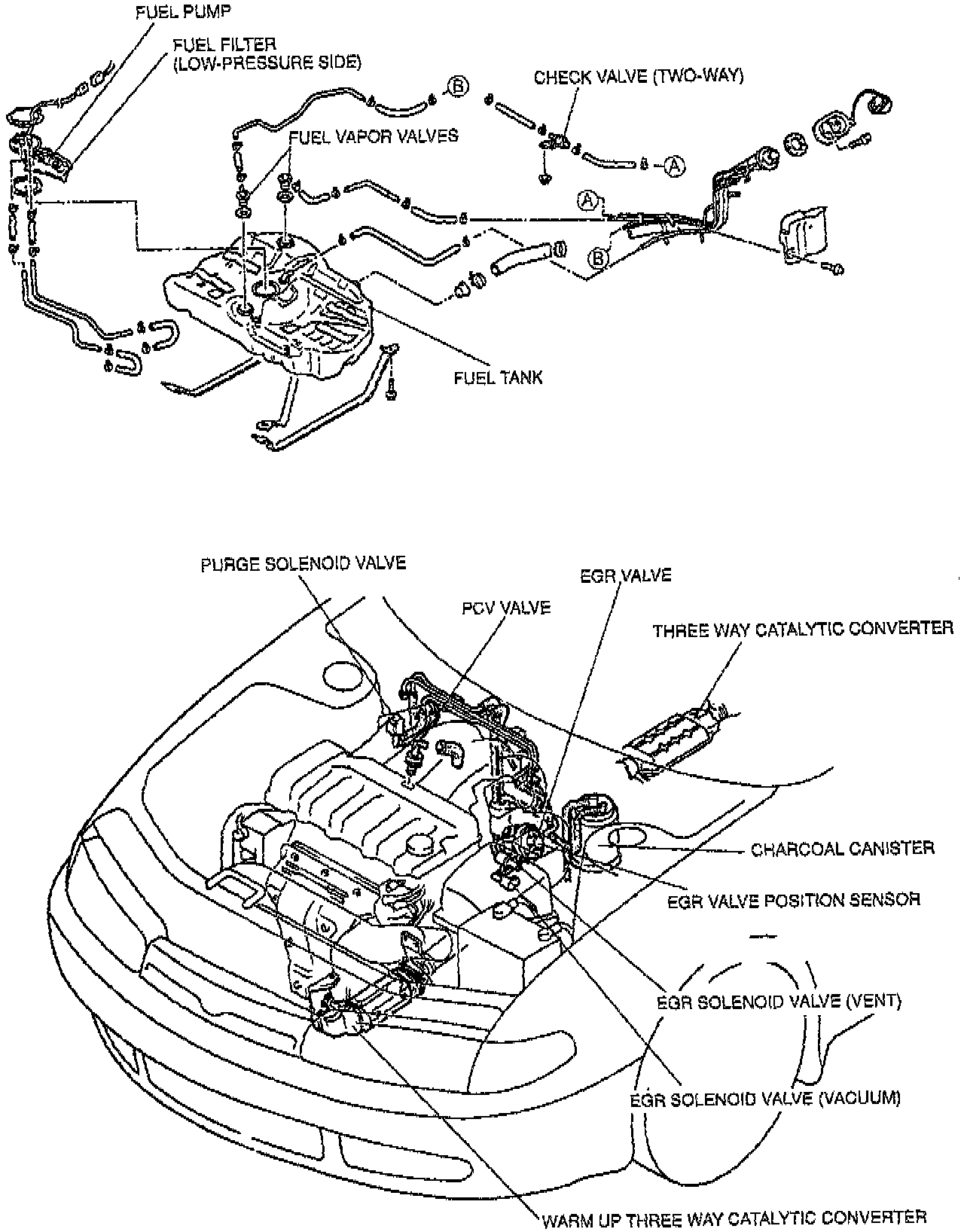 The following systems are employed to reduce CO, HO, and NOx emissions.