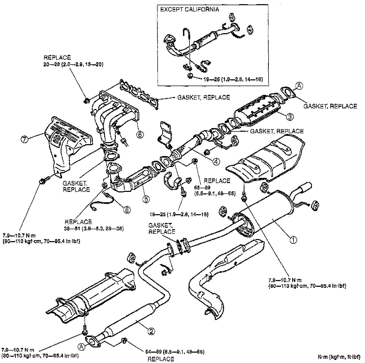 3. Three way catalytic converter Inspect for deterioration and restriction