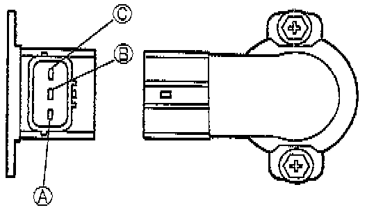 2. Using an ohmmeter, measure resistance between throttle position sensor terminals A and C.