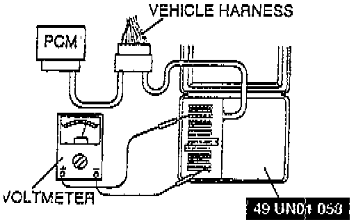 7. Measure voltage at PCM terminal 47 under the conditions shown in image.