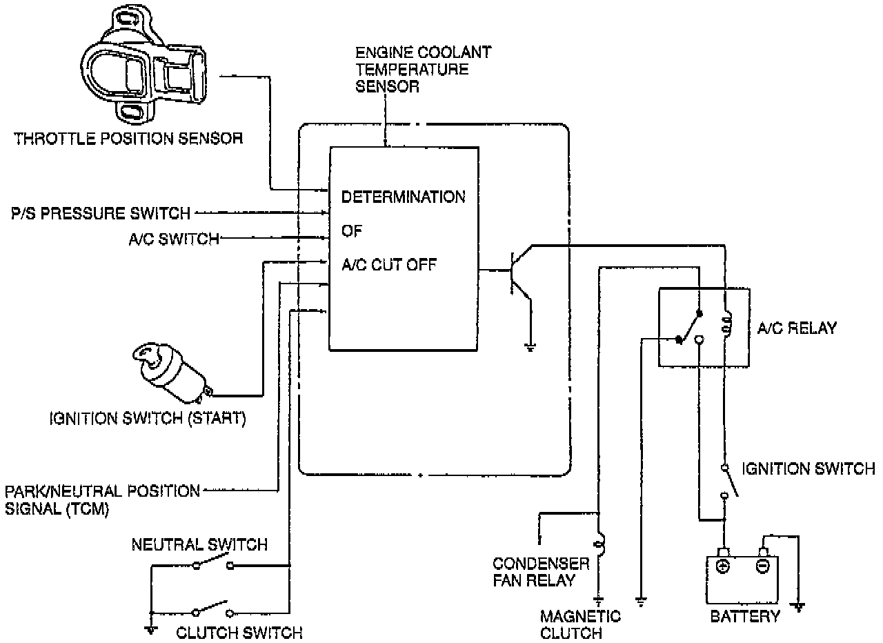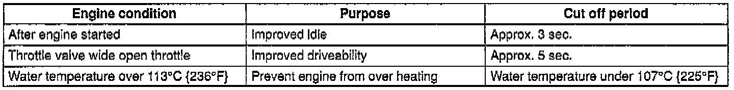 An A/C cut off system is used to improve idle smoothness immediately after starting the engine and to improve acceleration performance.