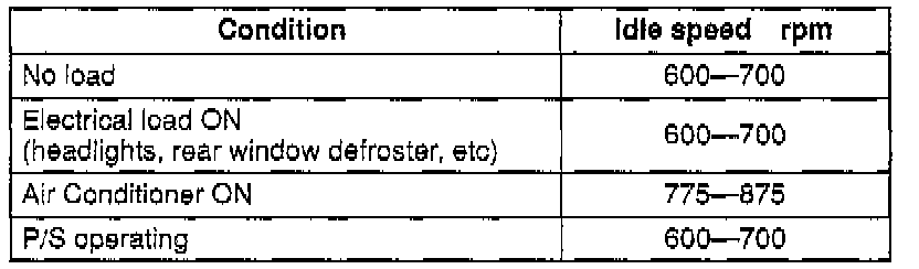 Idle speed (Neutral): 600-700 (650 ± 50) rpm