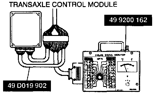 3. Connect the SSTs (Engine Signal Monitor and Adapter Harness) to the transaxle control module as shown.