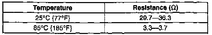 NOTE: Two separate intake air temperature sensors (IAT)s are utilized by the engine control system. One sensor is incorporated in the volume airflow sensor assembly and the other is mounted on the intake manifold dynamic chamber.Intake Air Temperature Sensor Resistance Specifications - E2-THA: