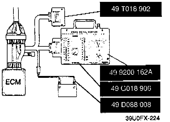 3. Connect the Special Service Tools (SSTs) (Engine Signal Monitor and Adapter Harness) to the Engine Control Module (ECM) as shown.