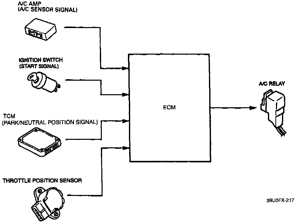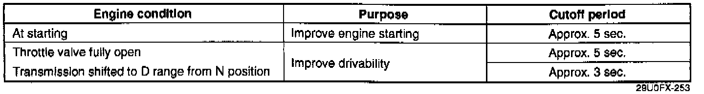 An A/C cut-off system is used to improve idle smoothness after just starting the engine and to improve acceleration performance.