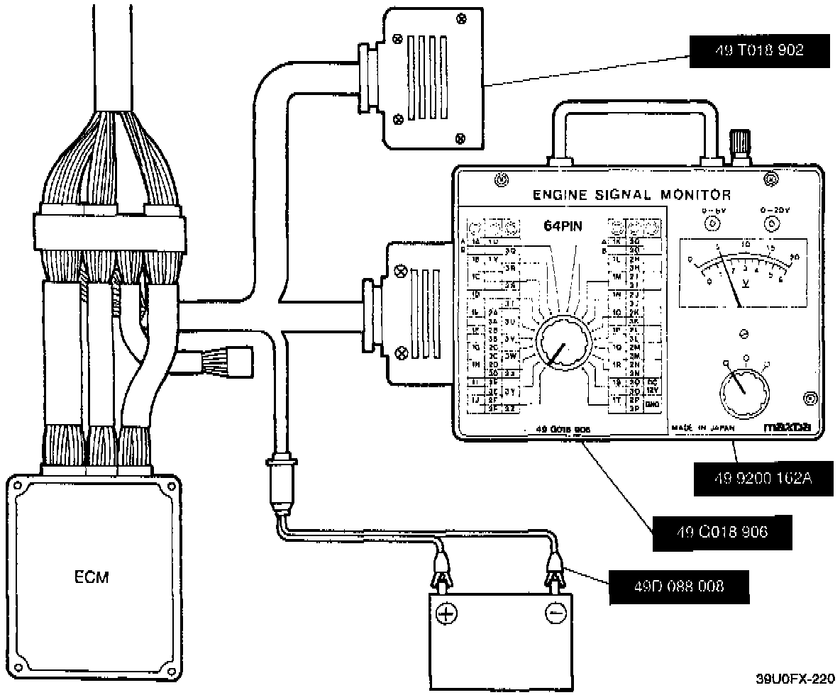 The Engine Signal Monitor (49 9200 162A) was developed to check the ECM terminal voltages.