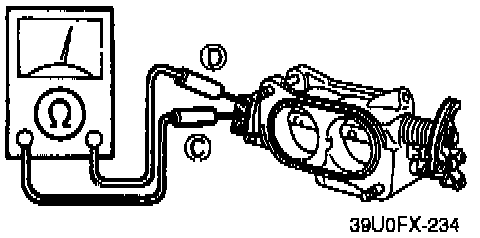 1. Disconnect the throttle position sensor connector from the throttle position sensor.2. Connect an ohmmeter between C and D terminals.
