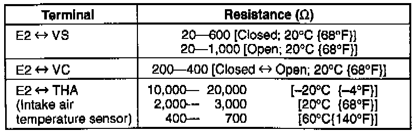 Volume Airflow Sensor Resistance Specifications: