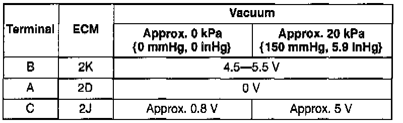 3. Turn ignition ON (engine OFF) and measure voltage as shown on image chart.