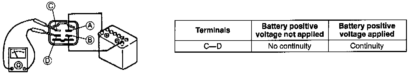 2. Apply battery positive voltage to terminal A and ground terminal B of the main relay.