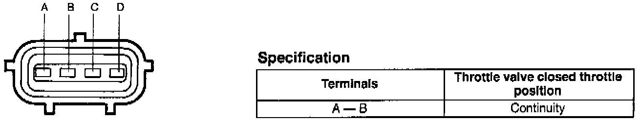 6. Verify that NO continuity exists between throttle position sensor terminals A and B.
