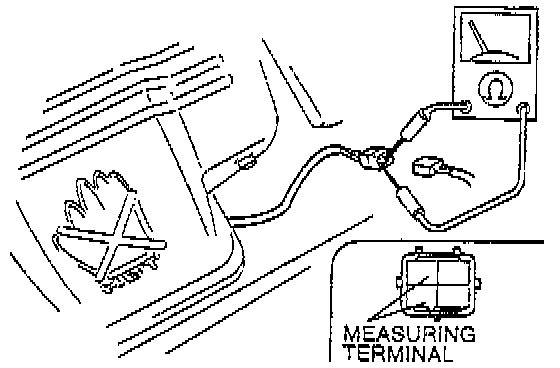 3. Connect an ohmmeter between heated oxygen sensor terminals as shown.