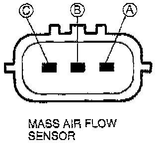 - Mass air flow sensor terminal C voltage: approx. 12 V