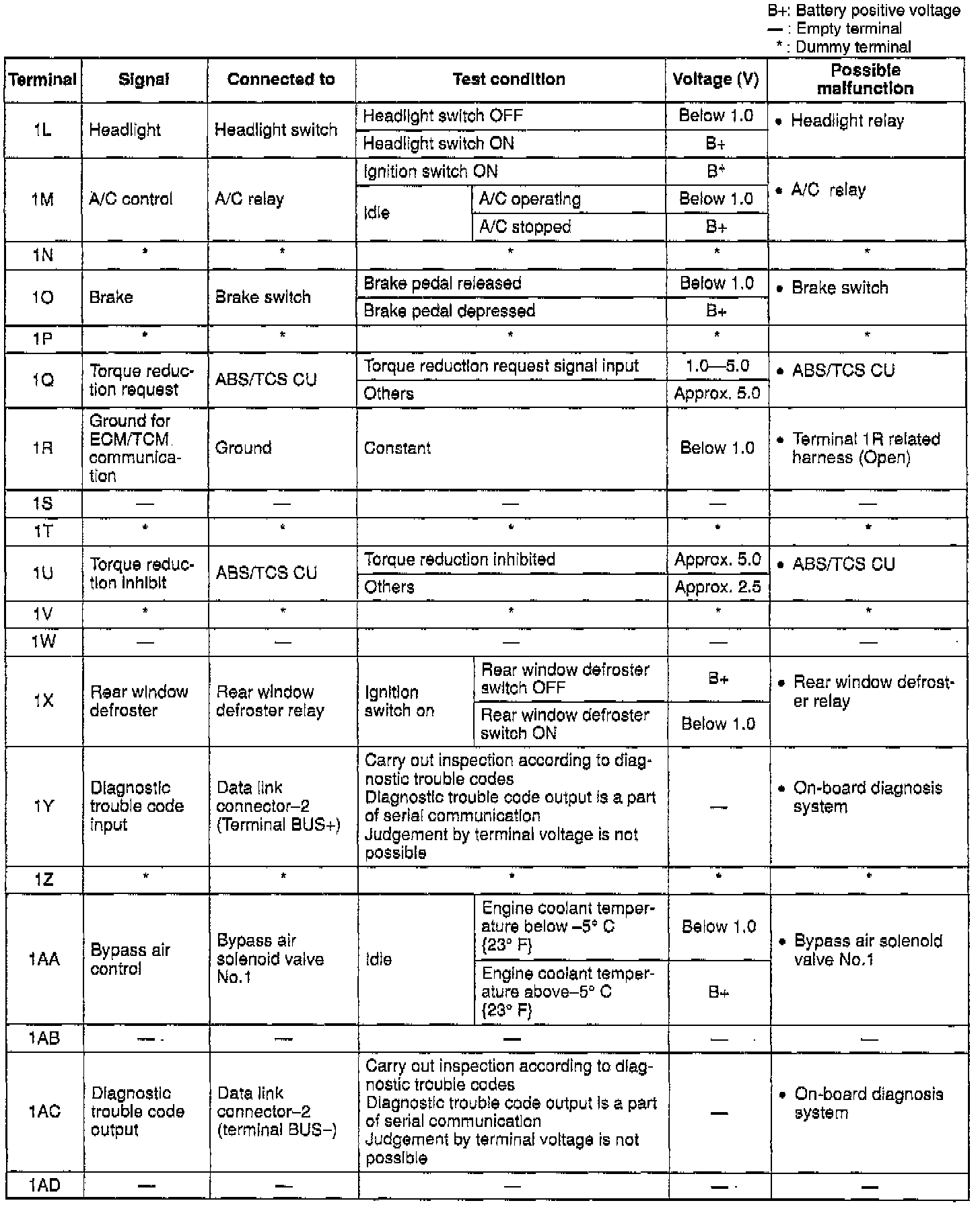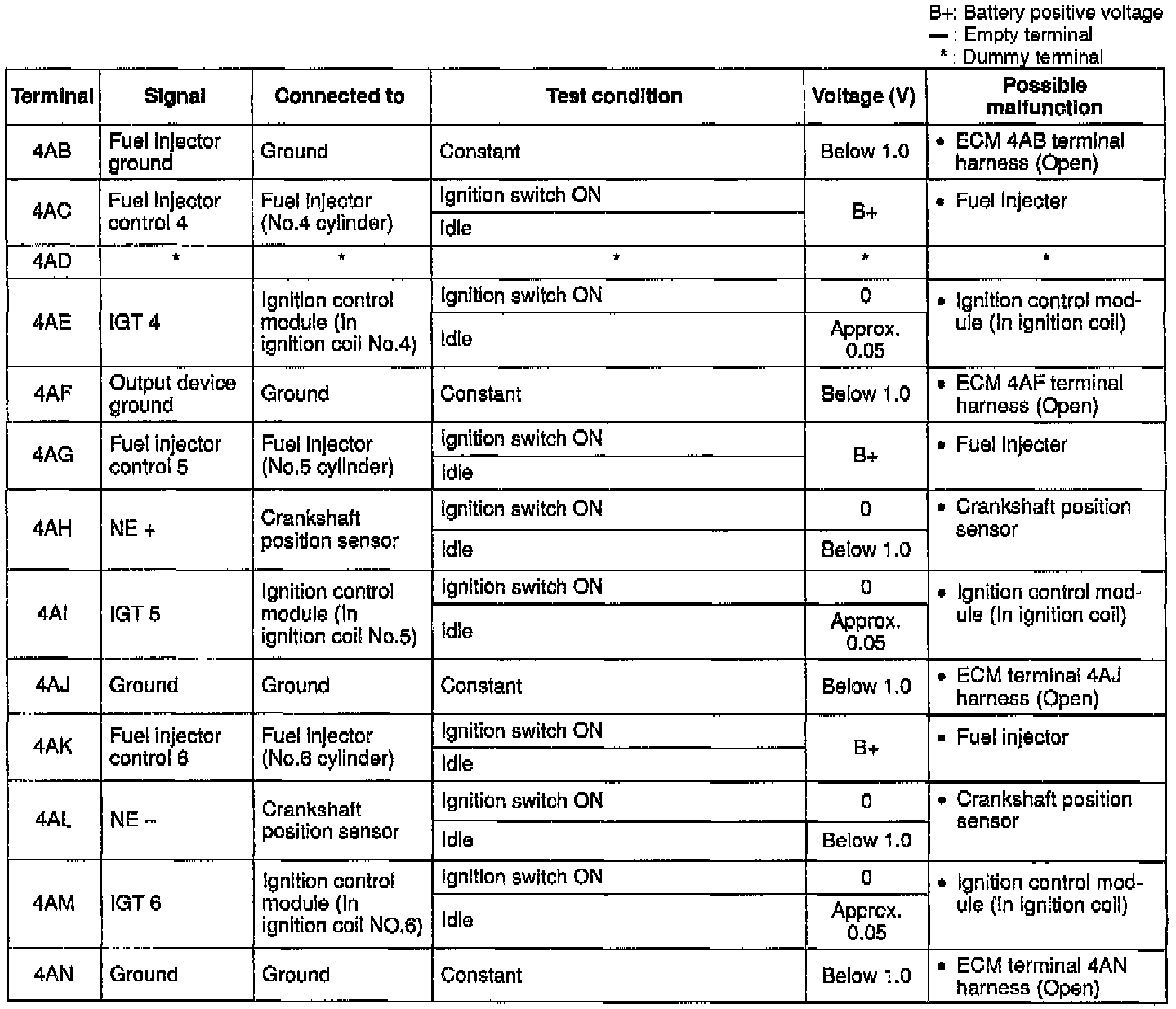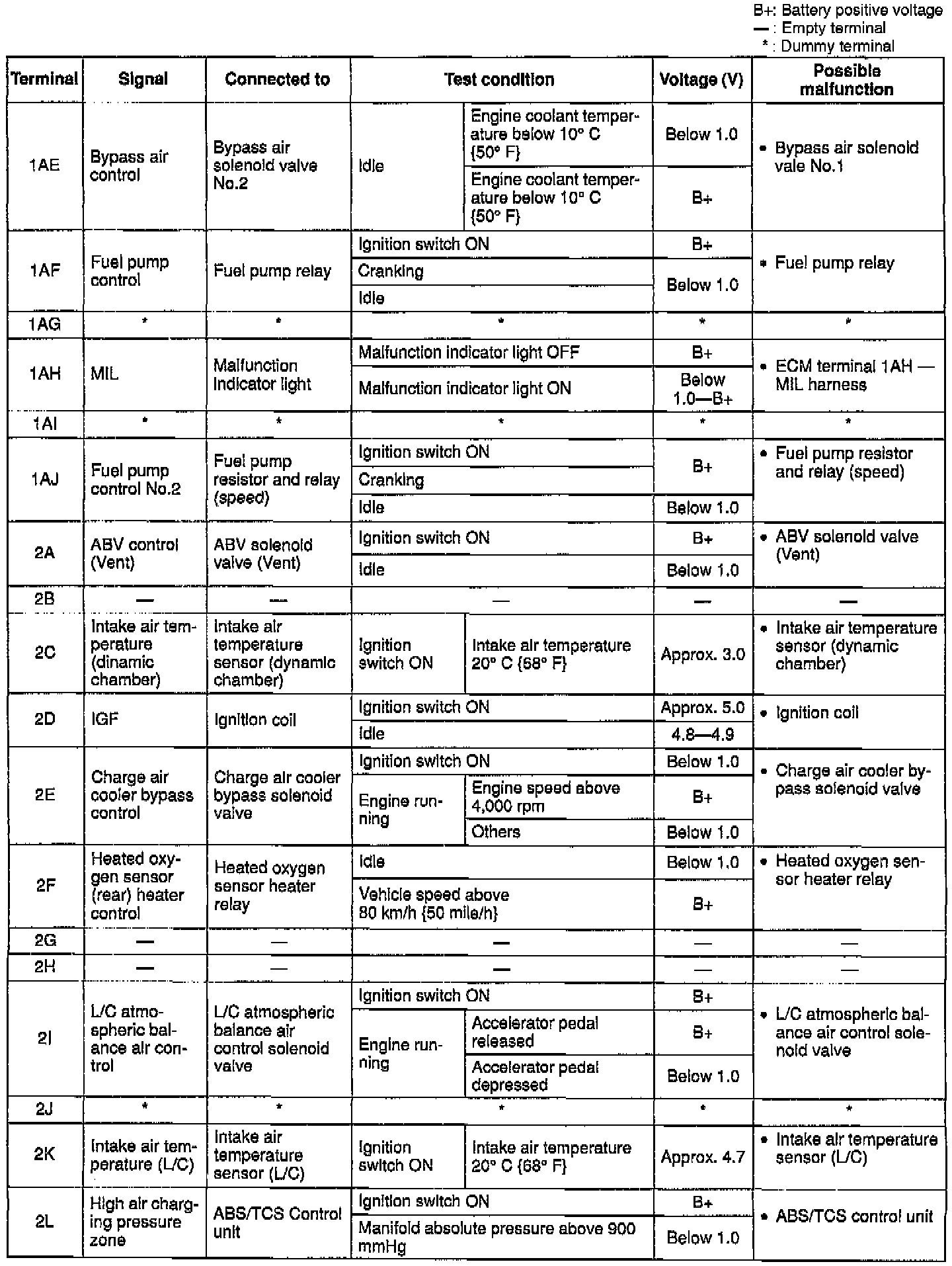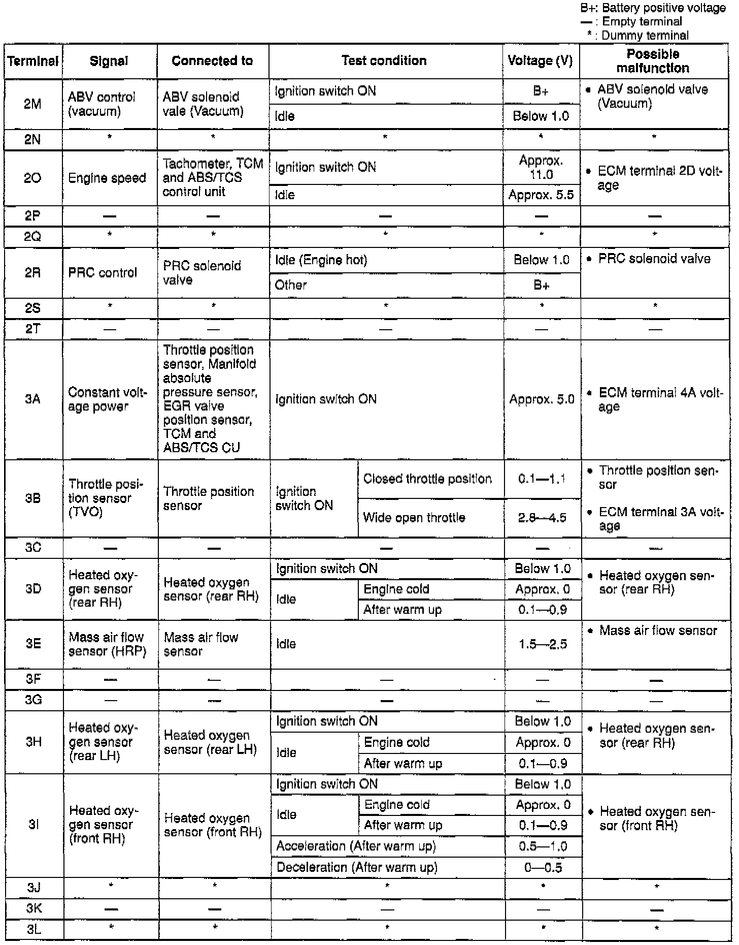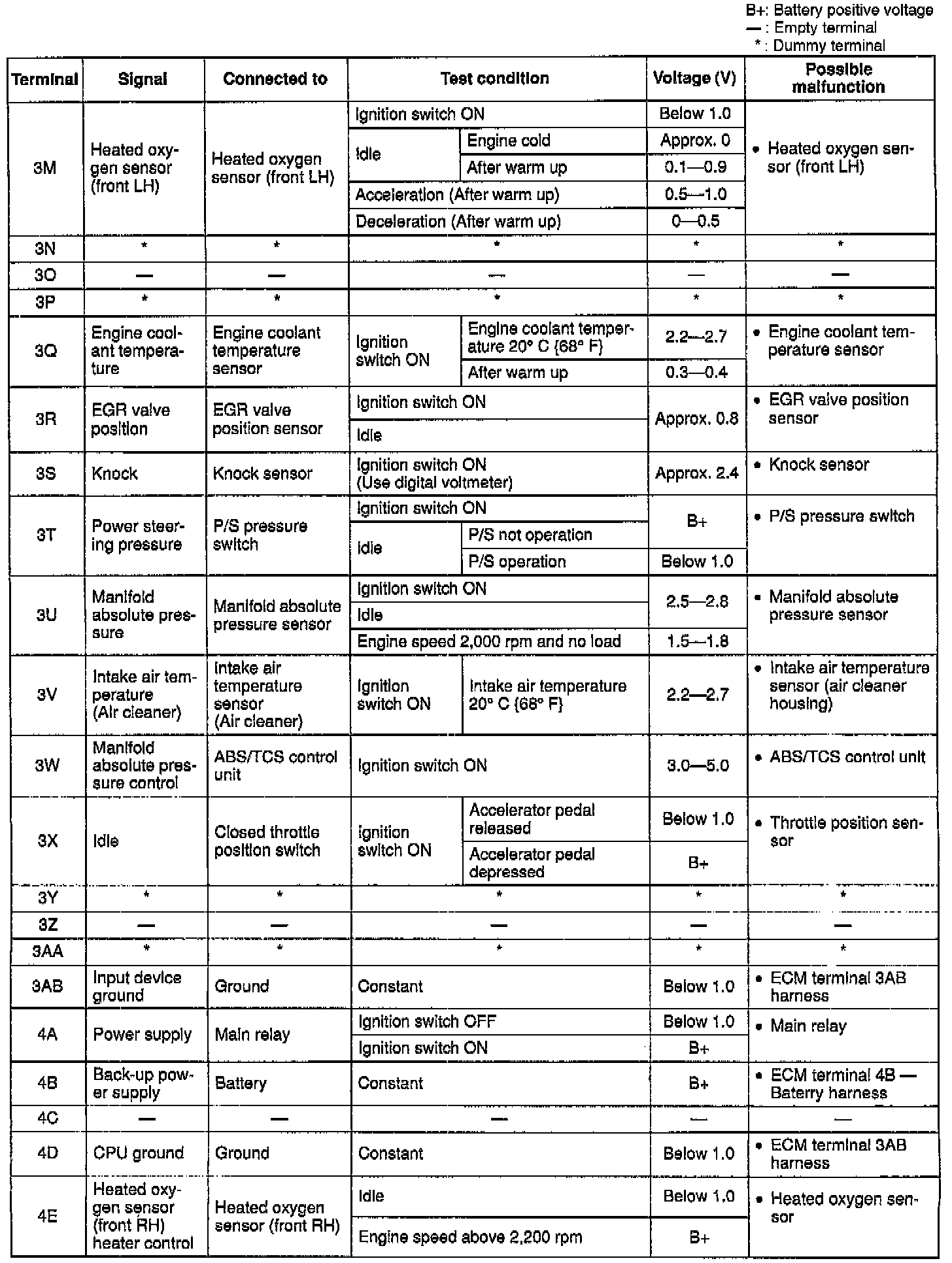 Terminal voltage (Reference)View: ECM Terminal Layout: