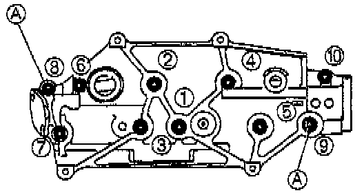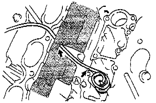 1. Fit the knock sensor harness into the drill hole [A] on the cylinder block.