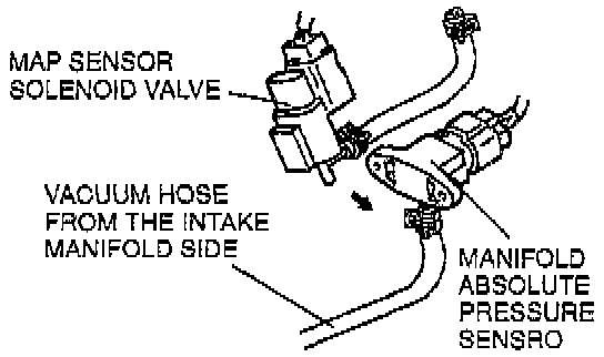 5. Disconnect the vacuum hose from the intake manifold side of the MAP sensor solenoid valve and connect the vacuum hose to the manifold absolute pressure sensor.