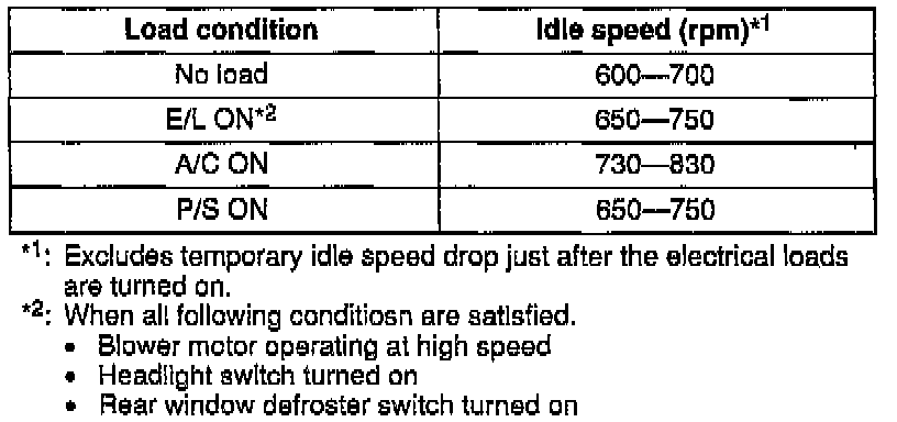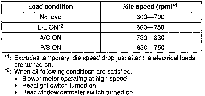 10. If not as specified at all load conditions, check related in put switches and idle air control valve.